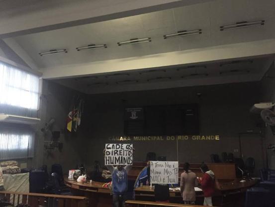Por causa da ocupação, a Câmara de Vereadores suspendeu o expediente durante a manhã desta quarta-feira. Na tarde de ontem, a sessão plenária foi cancelada. Em reunião com representantes do grupo, o prefeito de Rio Grande, Alexandre Lindenmeyer, reafirmou que a data da reintegração será mantida.